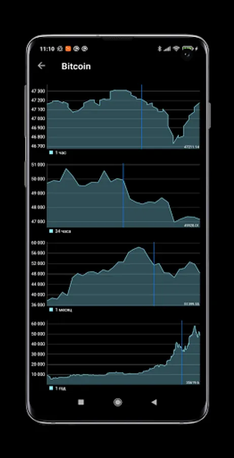 Dynamics of currency rate fluctuations for the selected period: hour, day, month, year.