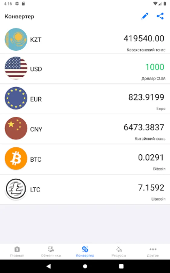- Convenient currency converter at the current exchange rate of the National Bank of the Republic of Kazakhstan