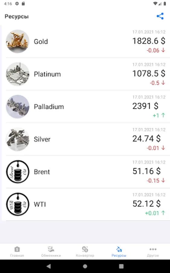 as well as exchange offices. Find out the cost of oil of various grades and precious metals.