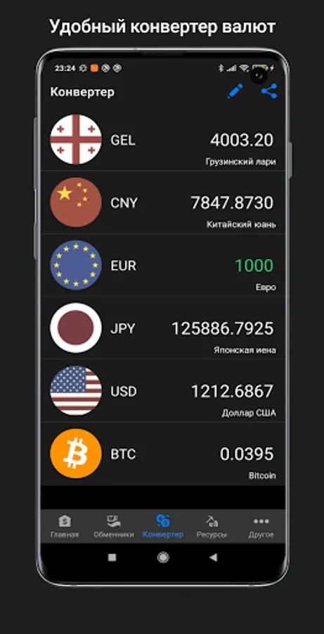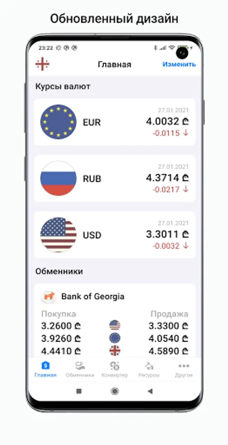 - Convenient currency converter at the current rate of the National Bank of Georgia