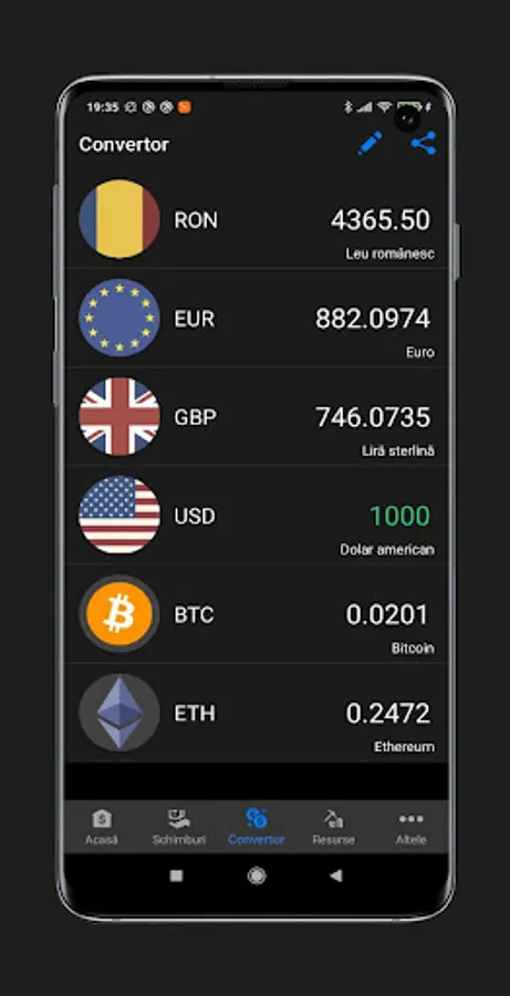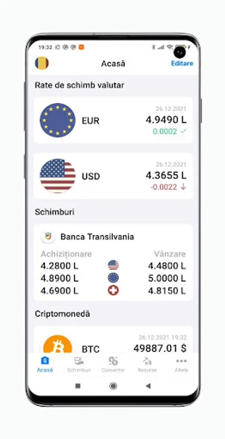 - Convenient currency converter at the current exchange rate of the National Bank of Romania