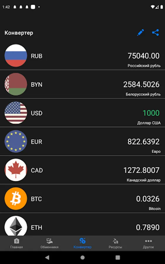 - Convenient currency converter at the current exchange rate of the Central Bank of the Russian Federation