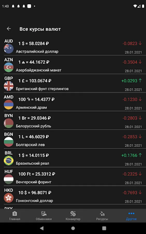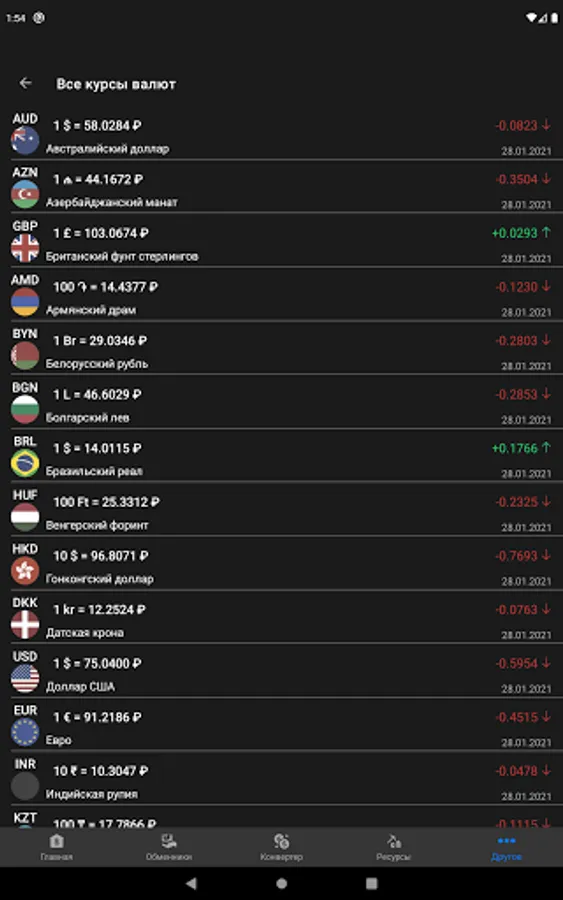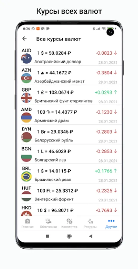 Exchange rates of Russia is a convenient and easy-to-use application that will help you find out daily updates on the exchange rate of the Central Bank of the Russian Federation and currency quotes of 2nd level banks, as well as exchange offices. Find out the cost of oil of various grades and precious metals.