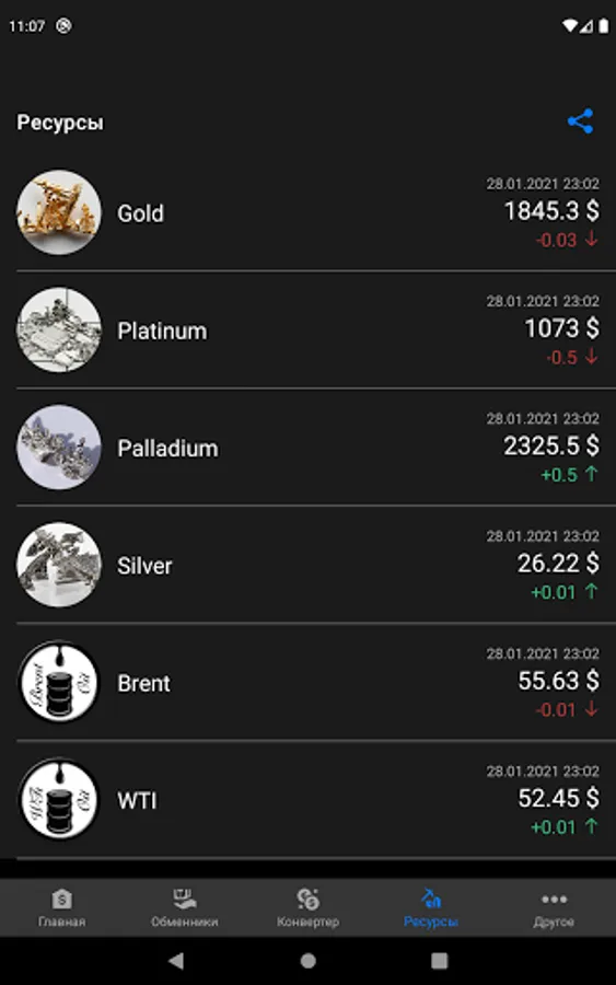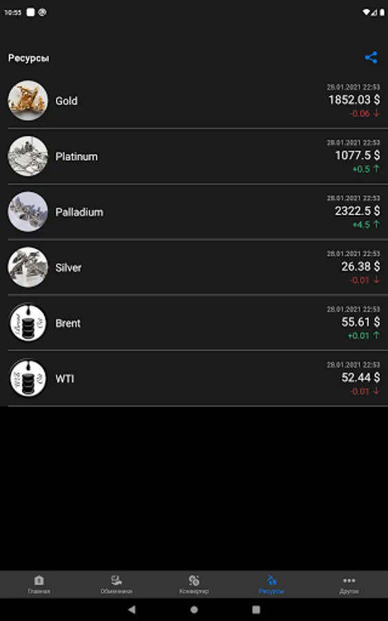 as well as exchange offices. Find out the cost of oil of various grades and precious metals.