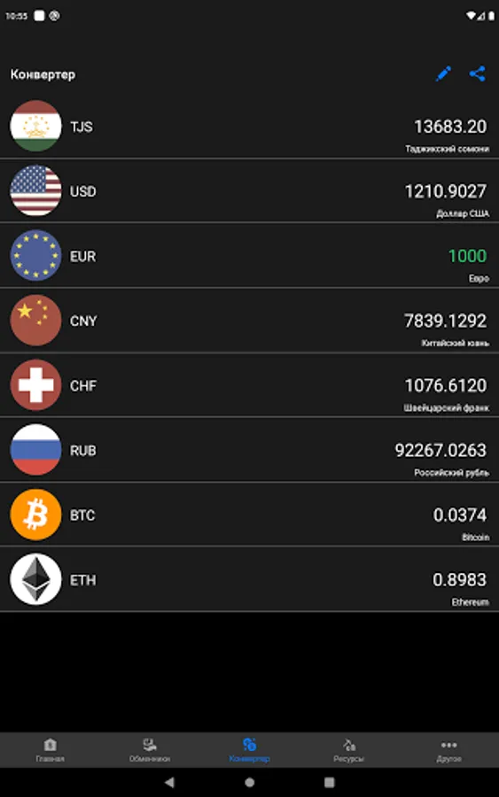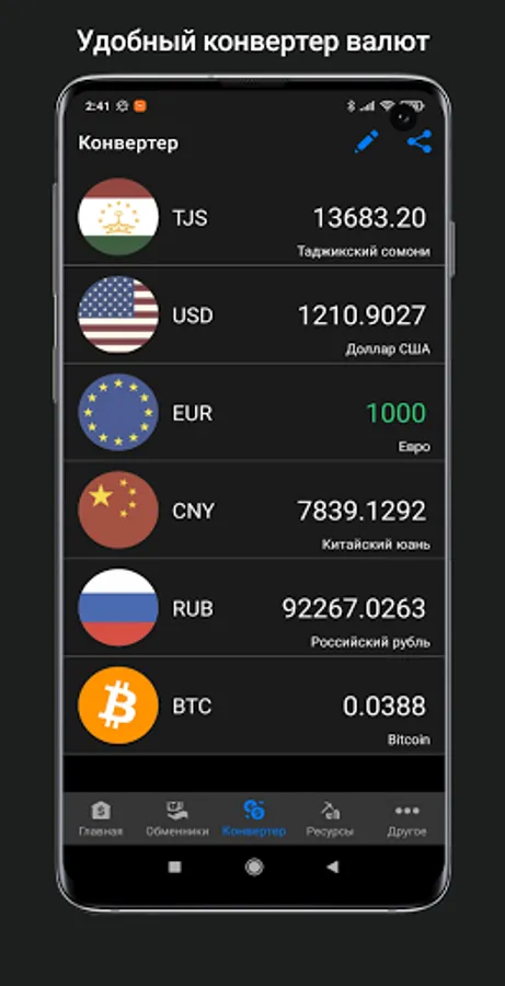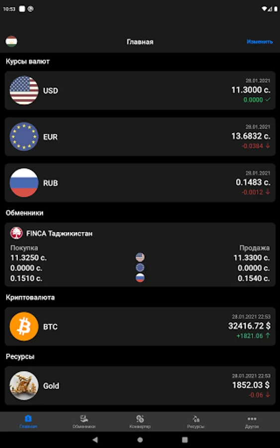 - Convenient currency converter at the current rate of the National Bank of the Republic of Tajikistan