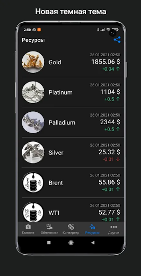 as well as exchange offices. Find out the cost of oil of various grades and precious metals.