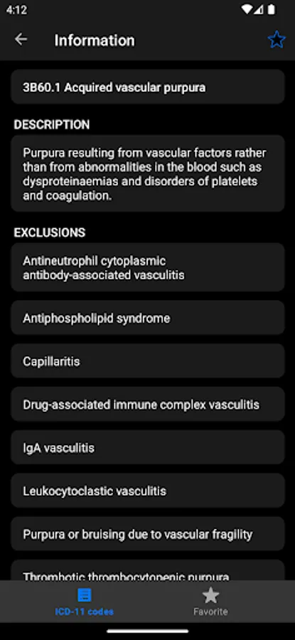Discover a comprehensive and user-friendly application for accessing the latest information on the classification of diseases and related health problems. With our app, you can conveniently browse through the sections and codes of ICD-11, search for specific codes, titles, or descriptions, and gain valuable insights into each code's description and exclusions. Stay up to date with the ever-evolving field of healthcare by utilizing our regularly updated database.