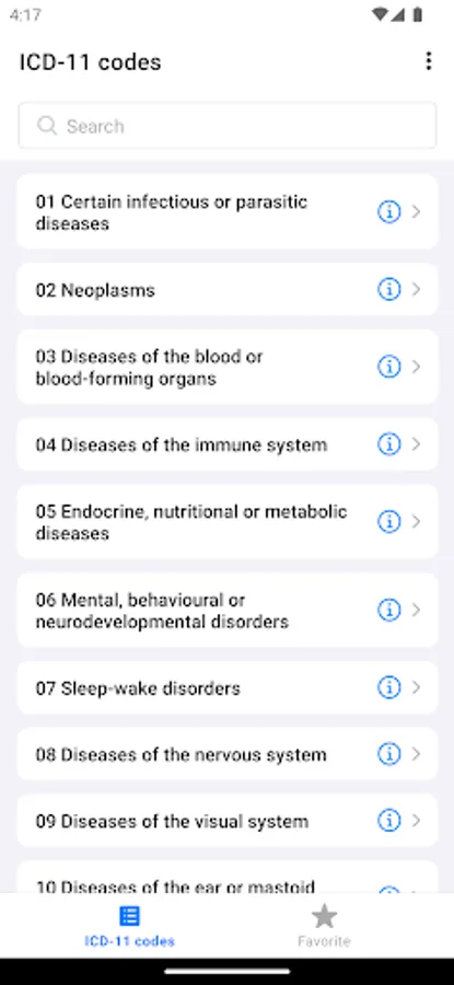- Effortless Navigation: Seamlessly explore the sections and codes of ICD-11 within the app's intuitive interface.