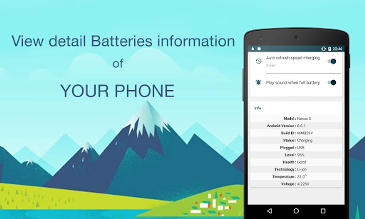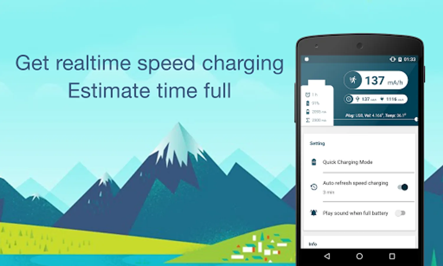 * Play sound khi full battery: Notify you when the battery is full