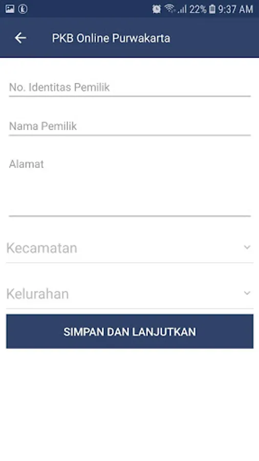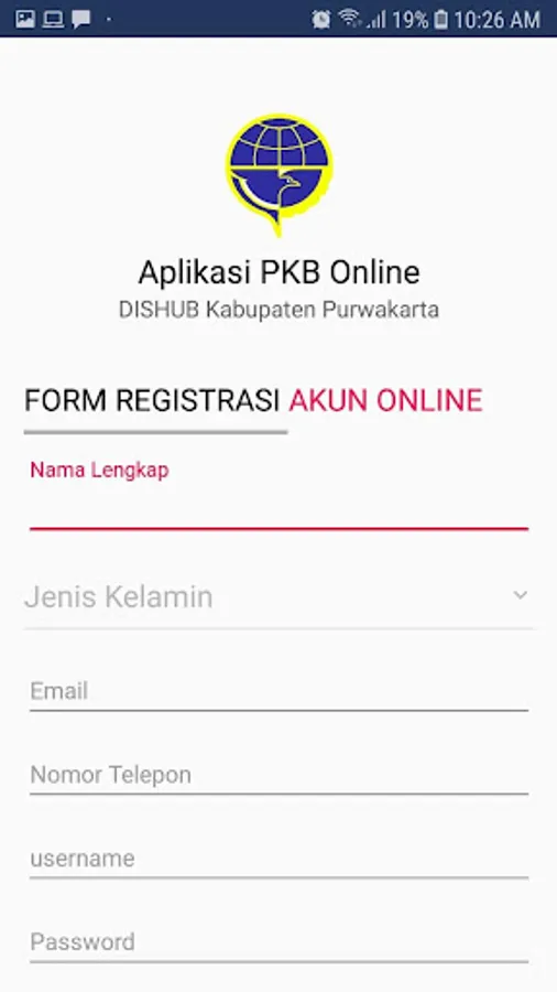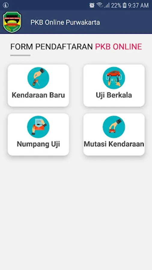 Aplikasi eKIR Purwakarta untuk melakukan pendaftaran PKB secara online. meliputi 4 menu utama: