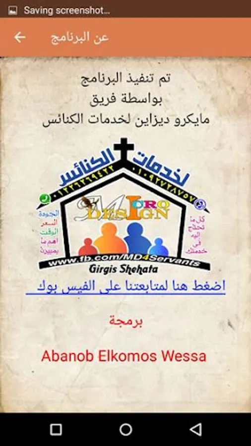 تم تنفيذ البرنامج بواسطة فريق مايكرو ديزاين #لخدمات_الكنائس