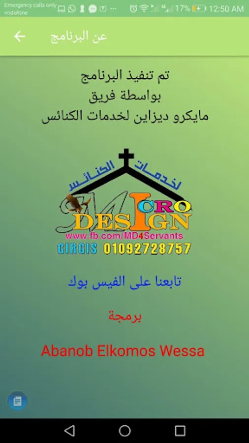 تم تنفيذ البرنامج بواسطة فريق مكتب مايكرو ديزاين لخدمات الكنائس
