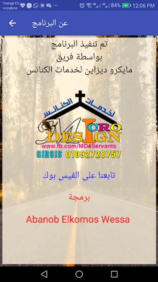 تم تنفيذ البرنامج بواسطة فريق مكتب مايكرو ديزاين لخدمات الكنائس