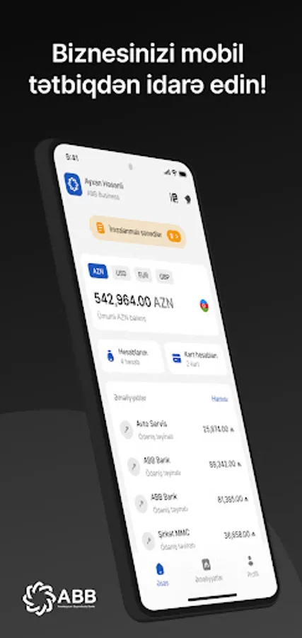 ABB business mobile application allows you to manage corporate banking operations on a 24/7 basis. In a few clicks you will be able to:
