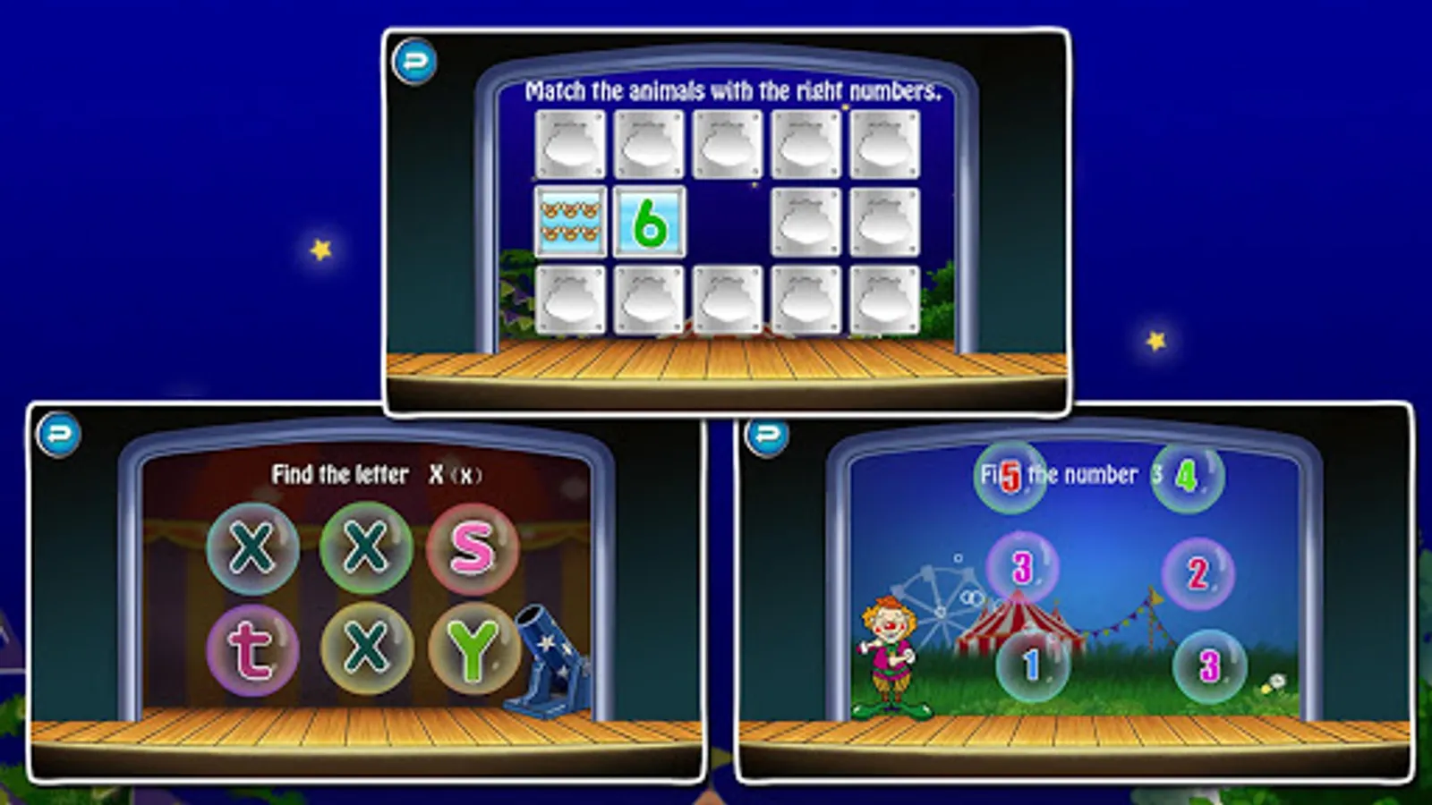 Each letter and number displayed and gamed with Cute Animal Circus.