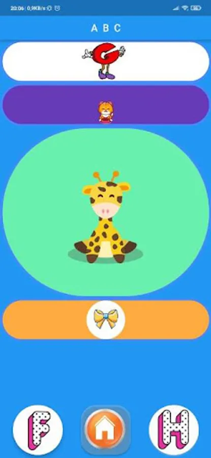 Application aimed at small children, to learn the letters, and become familiar with them.