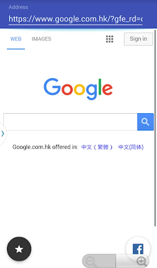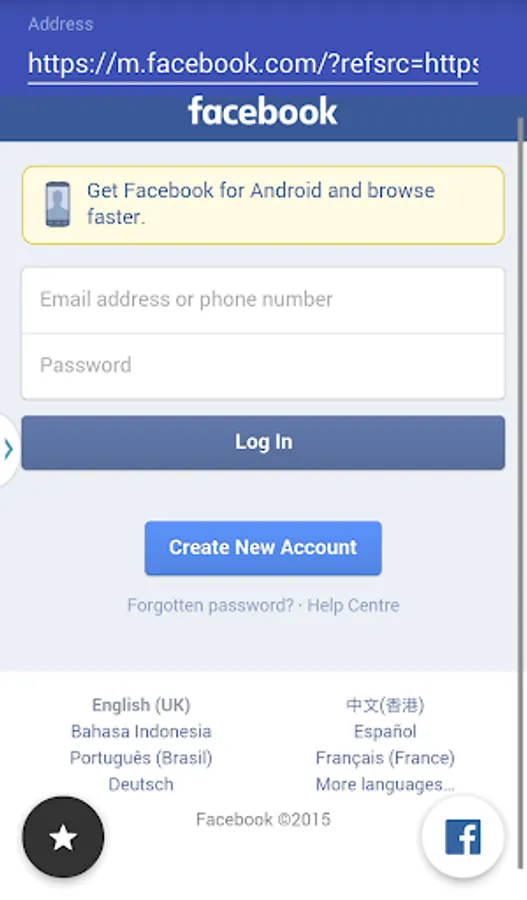 2. Button that allows your to surf Facebook instantly