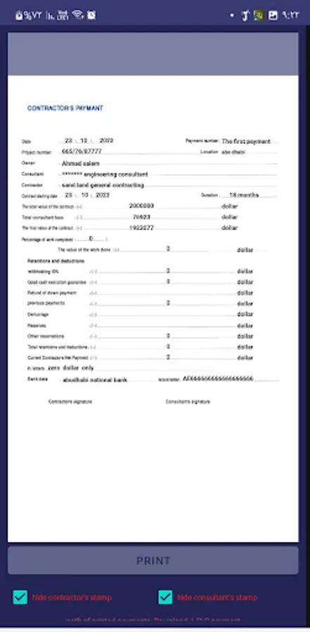 • The possibility of adding the stamp, whether with the stamp of the consultant or the contractor, before printing it