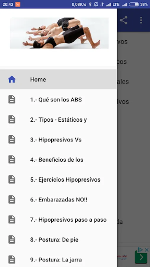 Hipopresivos abdominal exercises that are looking for a decrease in pressure in the abdominal cavity increasing the tone of the abdominal muscles and pelvic floor, and relaxation of the diaphragm.