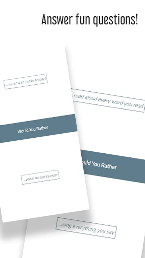 Easy Questions and difficult choices. Add your own questions to make it more interesting. Enjoyed playing this game with your friends? Now play this on your phone.