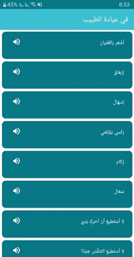 The idea of this application lies in reading the most common phrases used in daily life from (give me milk) or (how much is this?) At the food seller to the various phrases used when visiting the doctor or even throwing peace and greetings.