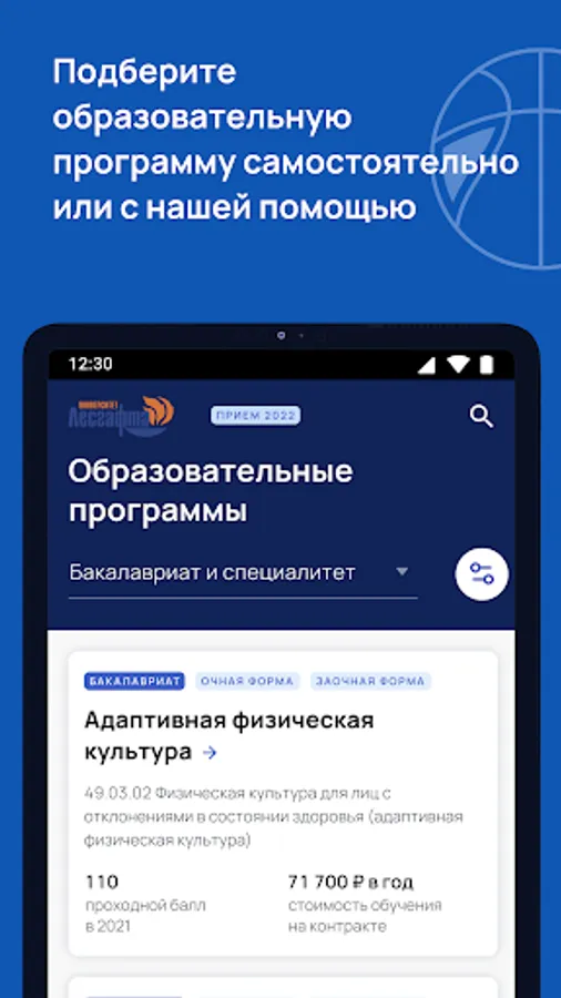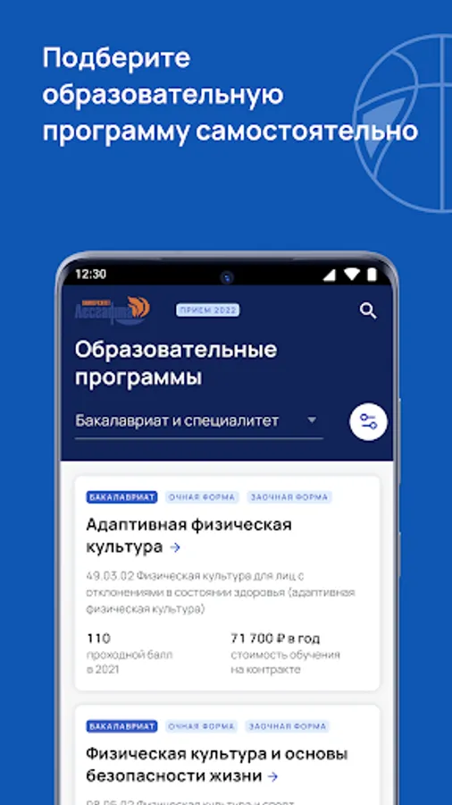 Our mobile application is a convenient tool for all applicants, which allows you to always be aware of the events of admission to NSU. P.F. Lesgaft.