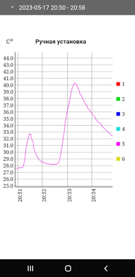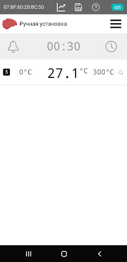 - indication of the current temperature values received via Bluetooth 5.0 from the IT-11 temperature meter (from one to six channels, depending on the number of probes connected to the device),