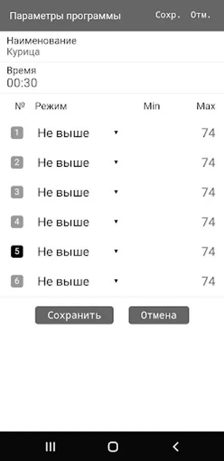 - selection of the type of alarm: when the temperature is exceeded, when the temperature drops, when the set range is exceeded,