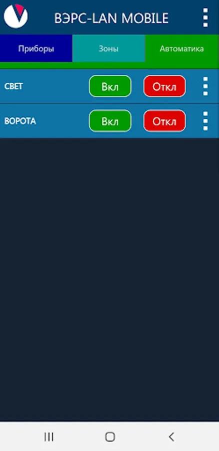 The application allows you to remotely monitor the current state of the VERS-PC LAN devices from a smartphone, view the archive of events, and manage the state. It is used in conjunction with the VERS-LAN software and an external VERS server (www.triogsm.ru).
