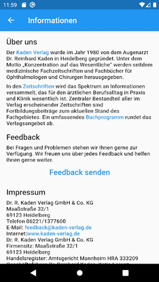 Kaden Verlag was founded in 1980 by the ophthalmologist Dr. Reinhard Kaden in Heidelberg. Since then, medical journals and books for ophthalmologists and surgeons have been published under the motto "concentration on the essentials".
