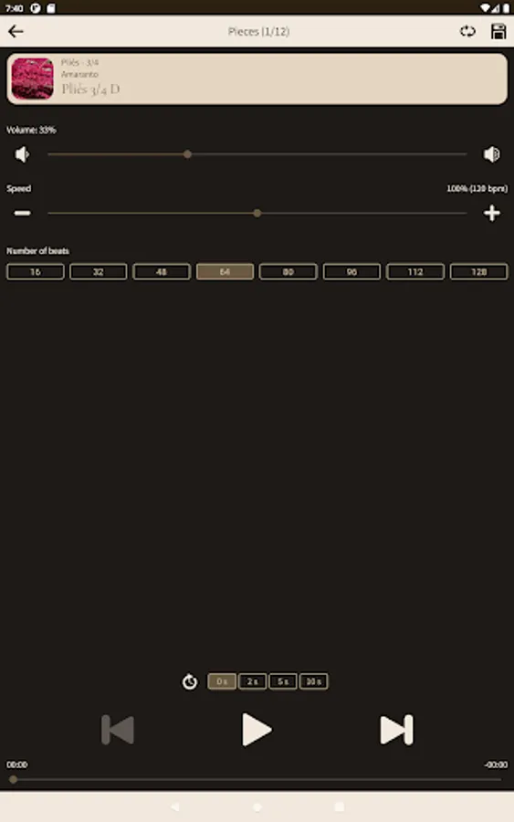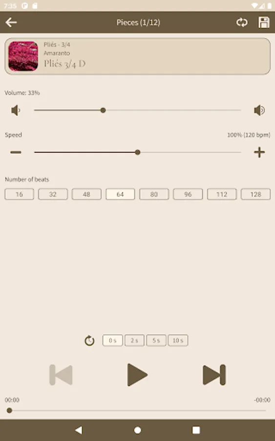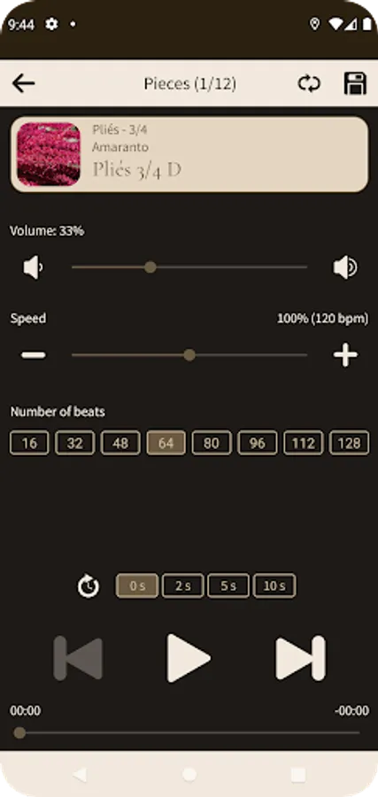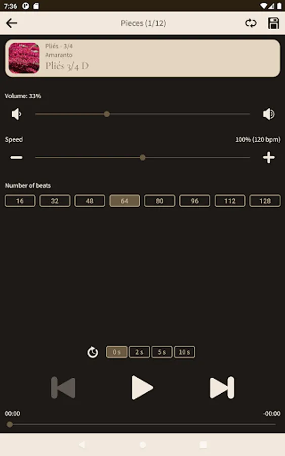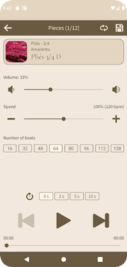 Choose the tune, set the speed and the number of bars, to adapt to your exercise, and start your dance class accompanied by the wonderful Ballet Class music, your own personal pianist!