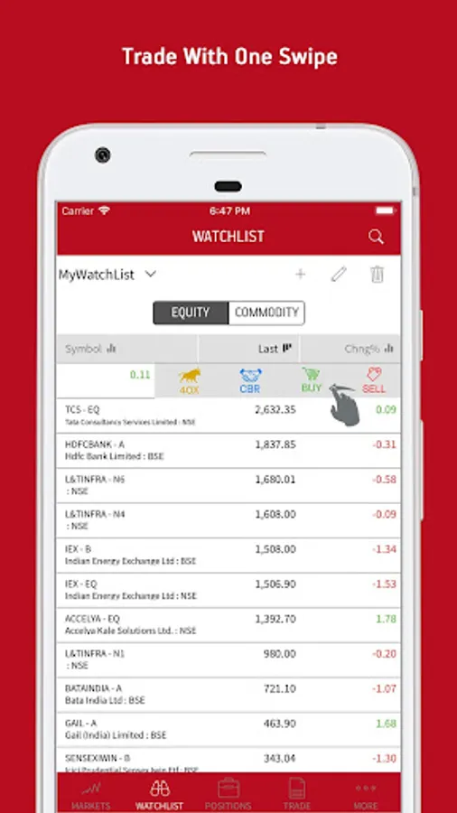 Trade with One Swipe – Now for a faster trading experience select the stock and swipe for Buy/Sell