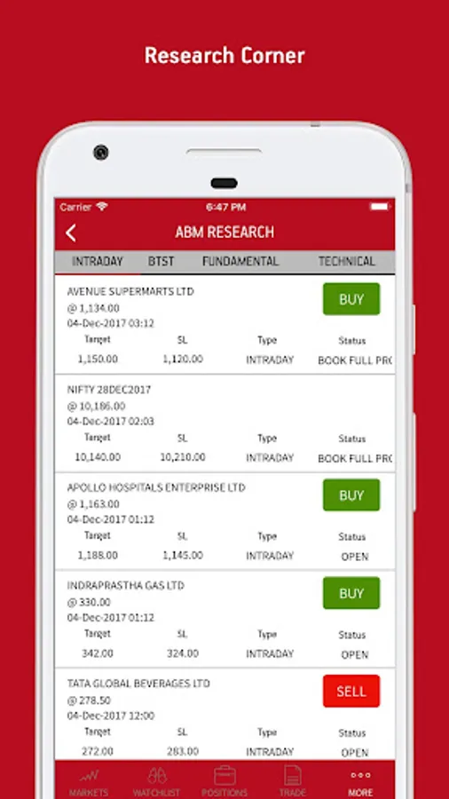Research at your fingertips: Access to Real-time Research Calls – Intraday, Positional, and Special Trade etc. also track the performance of the closed calls