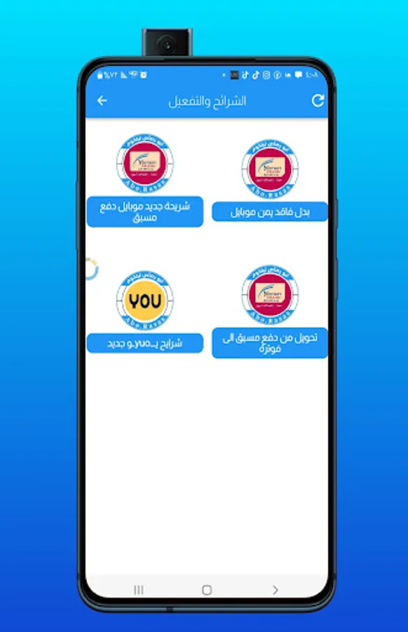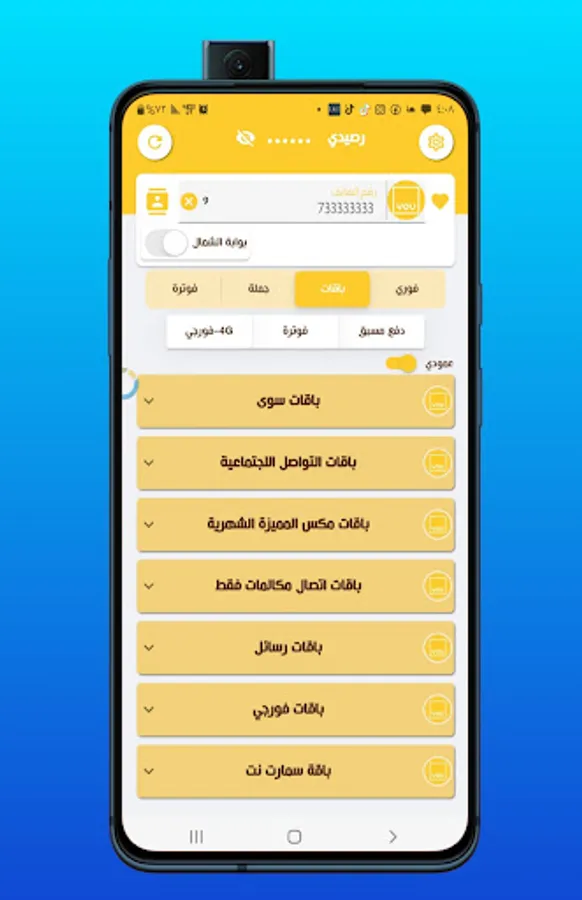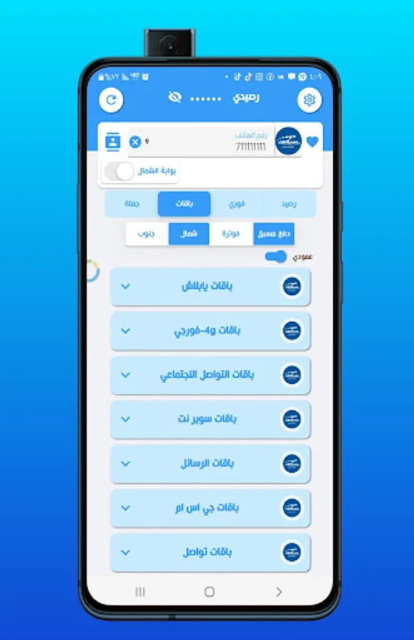 The Abu Rasas Telcom application allows the customer to control the views of the application and raise the level of security through interfaces dedicated to choosing designs or adding a security code to his account.