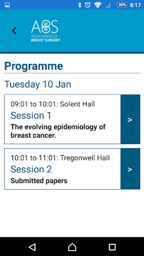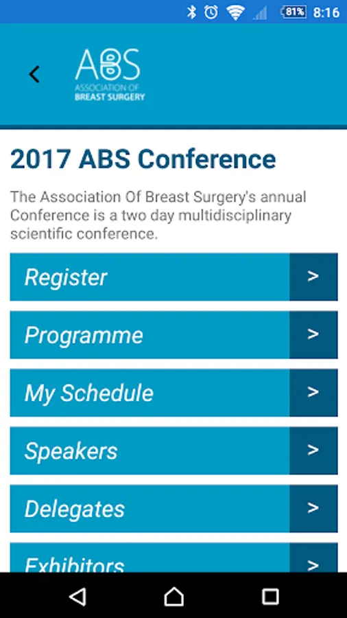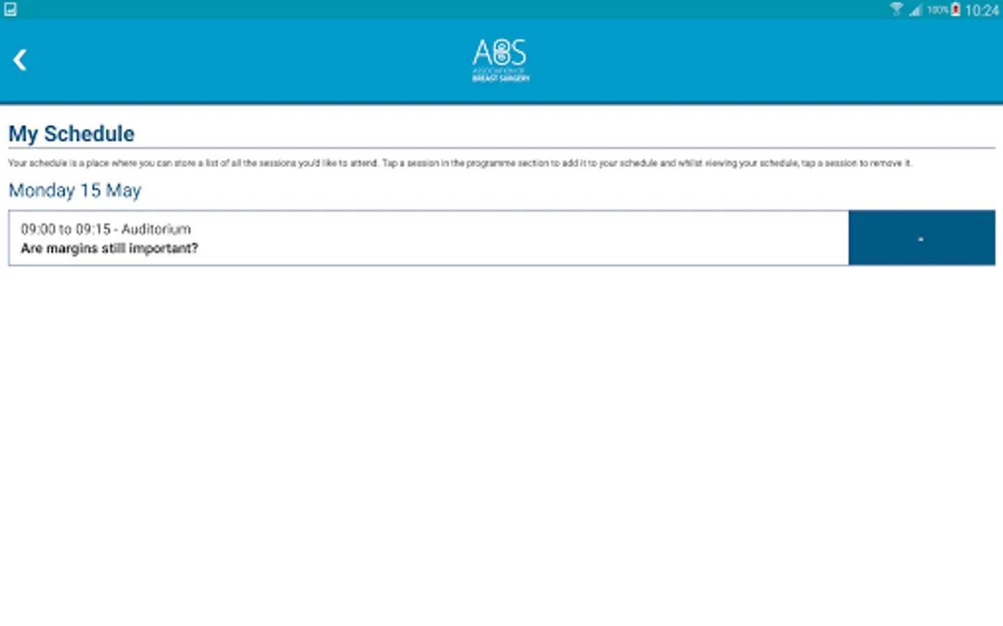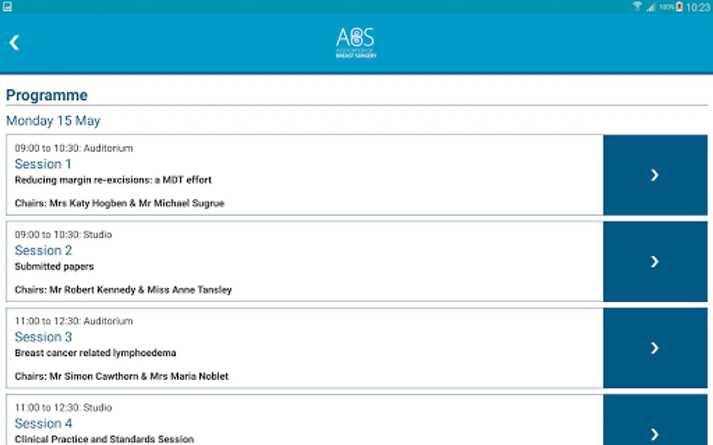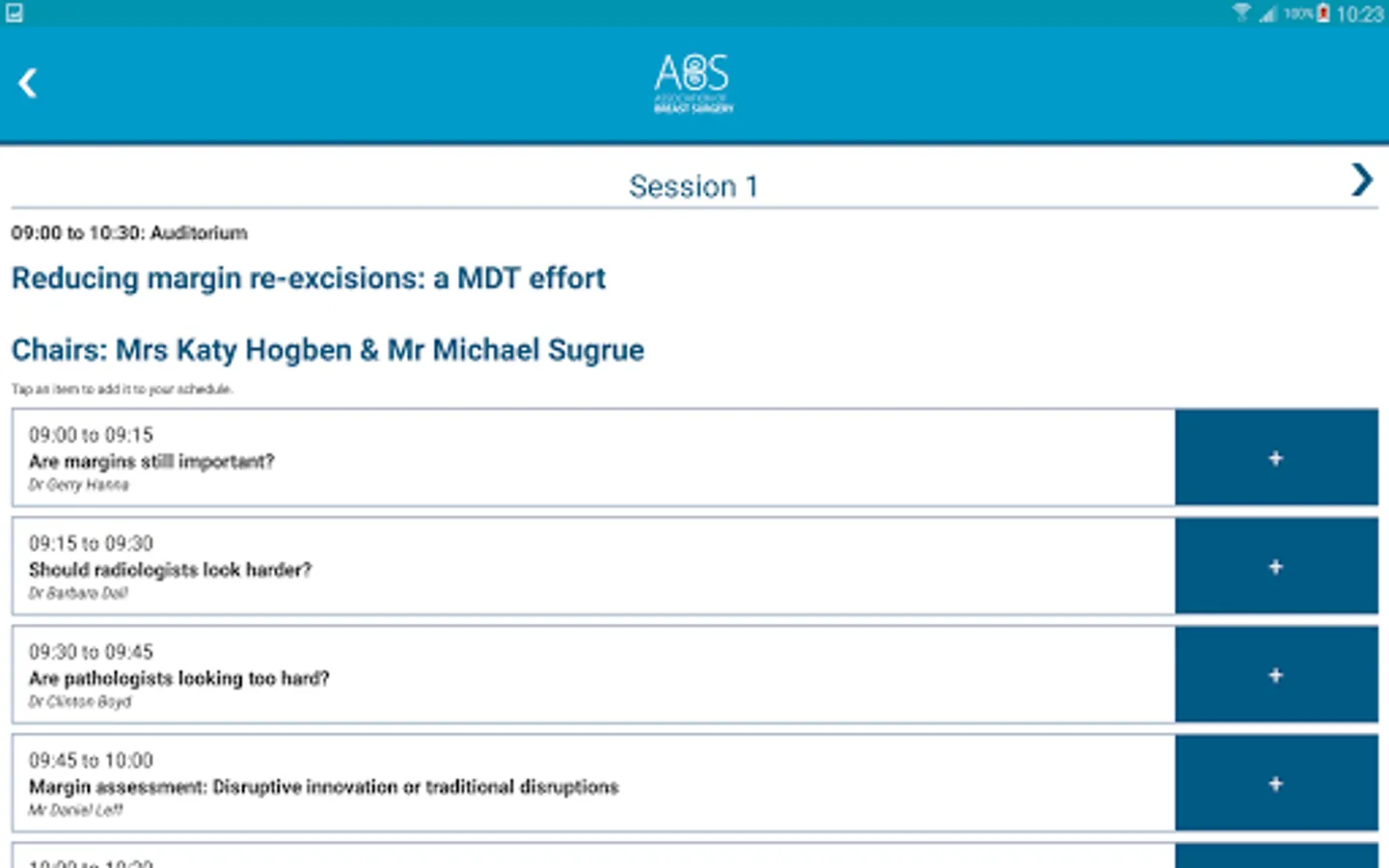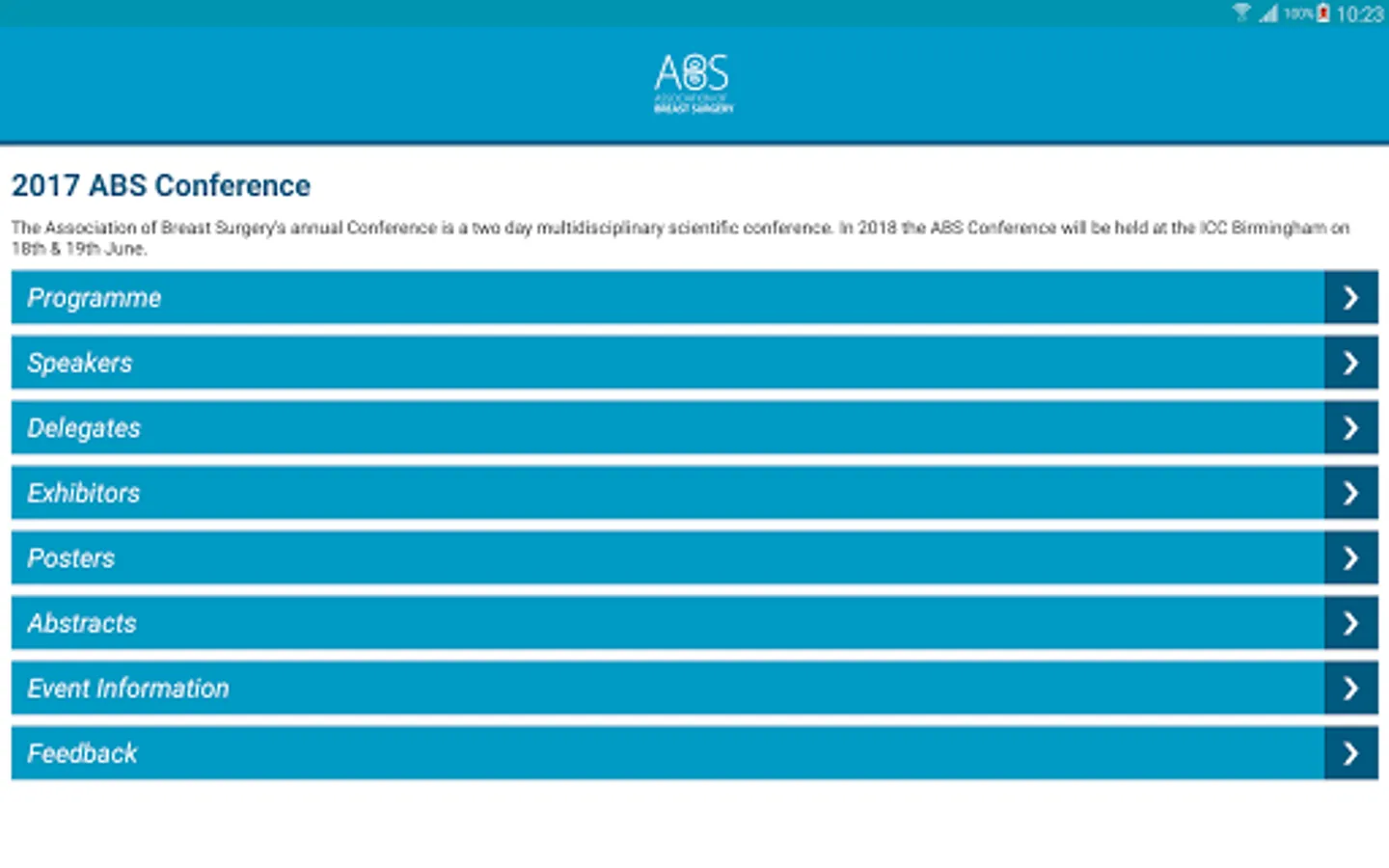The Association of Breast Surgery official mobile conference app allows users to easily access sessions and create a customised schedule. In the build up to the conference new information will be added to the app to keep users up to date.