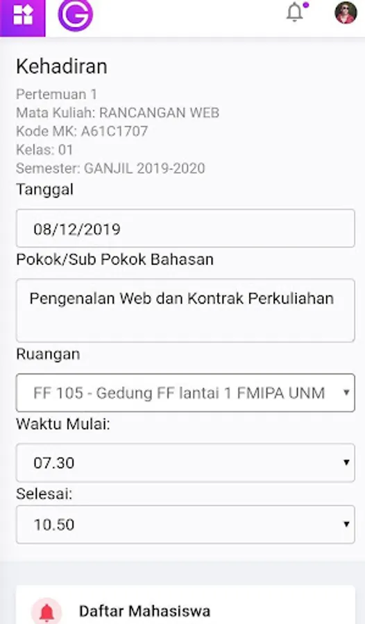 The Android-based UNM College of Mathematics and Natural Sciences Attendance System was developed by Ansari Saleh Ahmar.