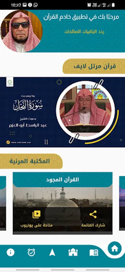The "Servant of the Qur'an" application makes the life of the Muslim on his mobile phone, as the application includes necessary features of interest to the Muslim, such as knowing the direction of the qiblah to perform prayer, determining the nearest mosque, and the electronic rosary.