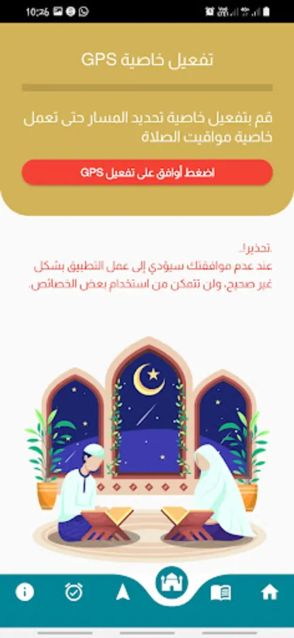 And the feature of determining the direction of the qiblah without an internet connection helps you determine the direction of the qiblah anywhere. This feature works by opening the (GPS) feature of your device, which helps you to perform prayers anywhere, please turn off the rotation mode.