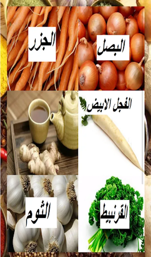Application on months vegetables contain (onions, garlic, bell peppers) pictures and benefits