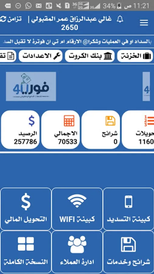 We present to you the “4U” application, the most unique and diverse in providing services and ease of use, the application specially designed with the latest software technologies for Android devices, supported by the dynamic display feature, and the provision of infinitely diverse, exclusive and unique electronic services created by the leading “4U” application experts in the field Smart applications. With the "For You" application, it will give you full control to manage your balance, your financial portfolio, and your electronic transactions such as payments, bonds, and reports. The “For You” application is characterized by ease of use and speed of implementation, supported by the “offline” feature that saves the user from consuming and rationalizing the Internet. It is also supported by a single window payment booth to pay off all networks, in an easier and faster way.