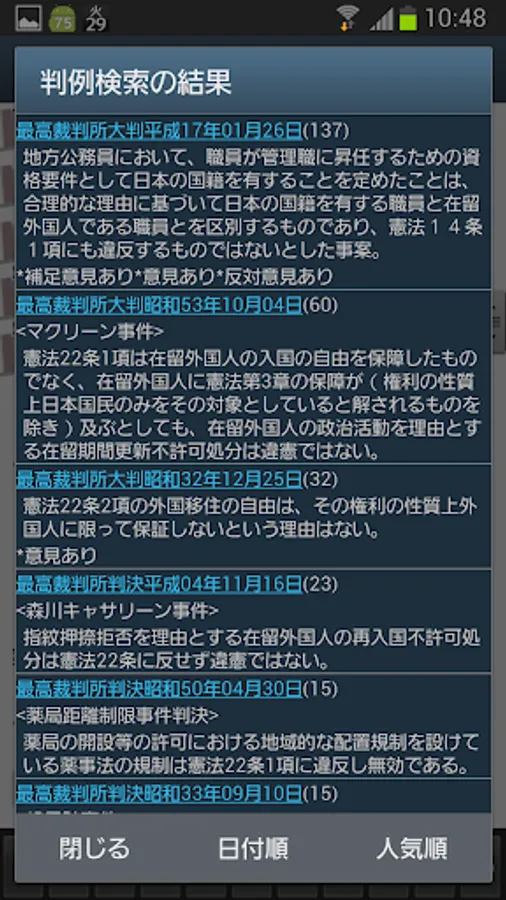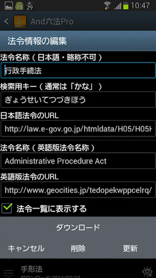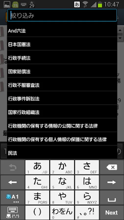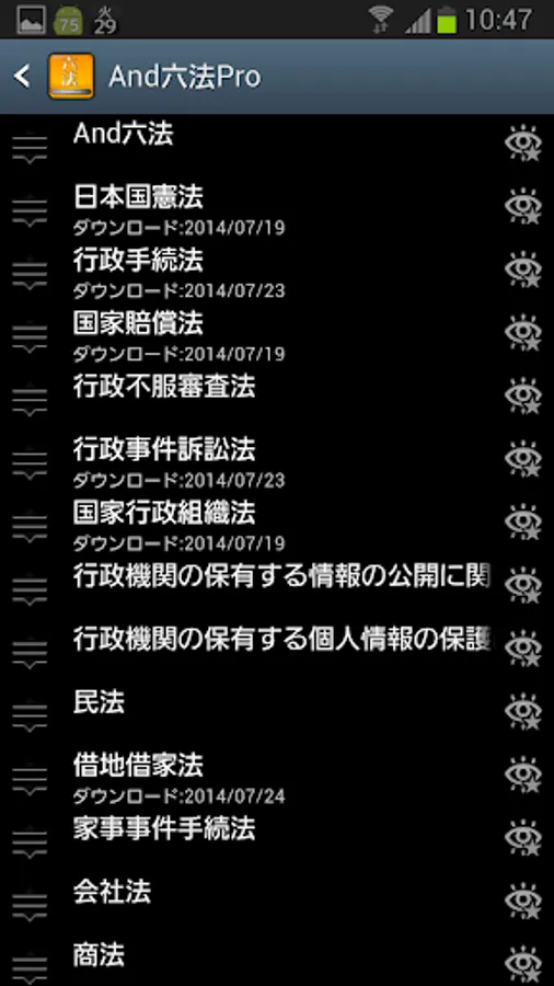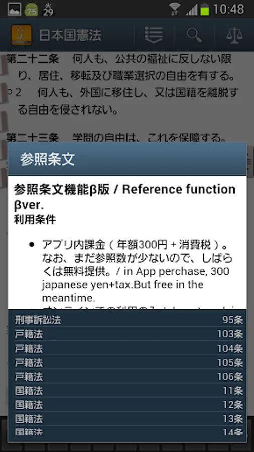 You can learn Japanese law with this app. For the Tokyo olympic 2020, it is better to know japanese law to visit to Japan. This application provides the Compendium of Japanese Laws for Android mobile phone and tablet PC. Users can browse 7713 Japanese laws and regulations including the Constitution of Japan, Acts, Cabinet Orders, Imperial Ordinances, the Cabinet Office Ordinances, and Ministerial Ordinances using the Data Distribution System from the Ministry of Internal Affairs and Communications. In addition, it has an availability to view on the Rules of Civil Procedure, the Rules of Criminal Procedure, the Rules of Civil Execution and the Rules of Civil Provisional Remedies which is not provided in the Data Distribution System. Since each legal data stored in the SD card, it is also able to viewed offline. Furthermore, it has an easy one-click access to the English version which is from the XML data of Japanese Law Translation Database System sourced from the Ministry of Justice. This application is made for all legal professions.