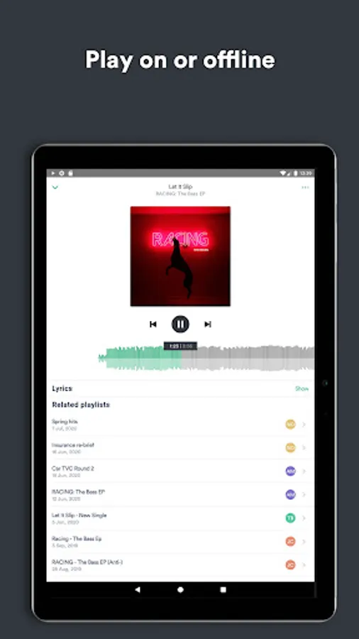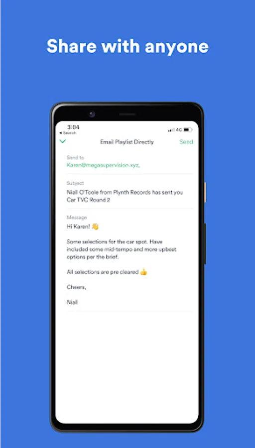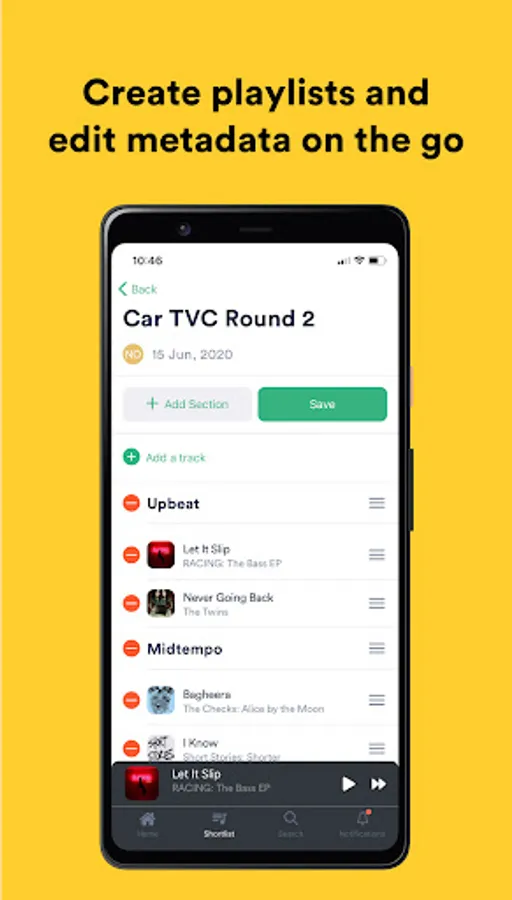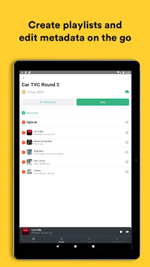With DISCO for Android, access all your music and playlists wherever you are. Upload and receive files, organize and edit, listen and playlist, with all changes instantly synced to the DISCO web app. Collaborate with your team in real-time – view your teammates’ work and quickly build on it.