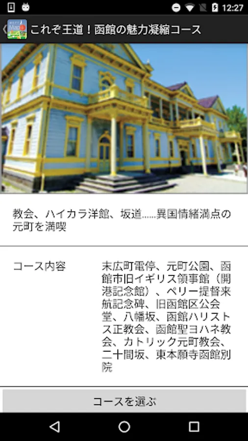 ・おすすめの観光コースから好きなものを選ぶと、コースが地図に表示されます。
