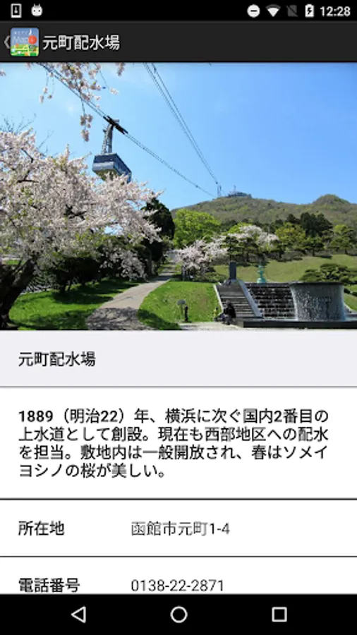 ・観光スポットの所在地、電話番号、紹介記事などを見ることができます。