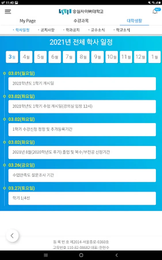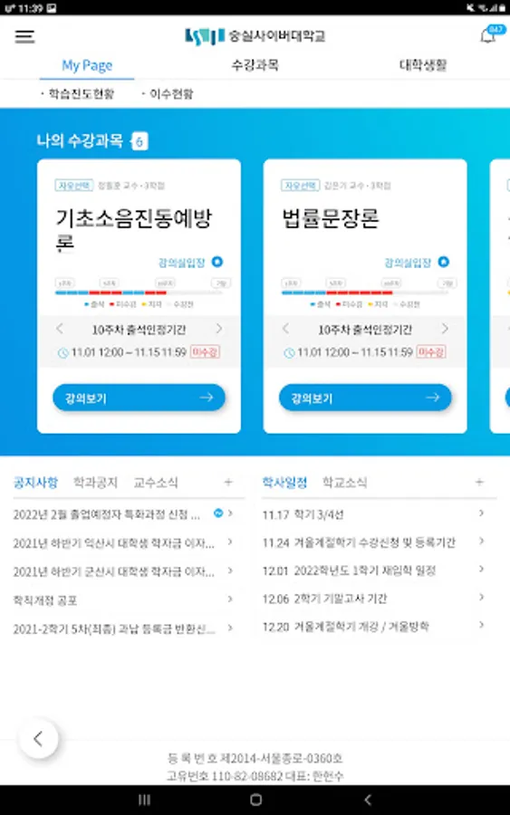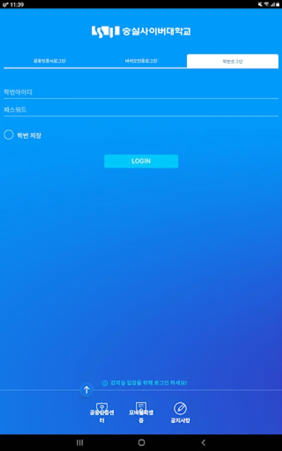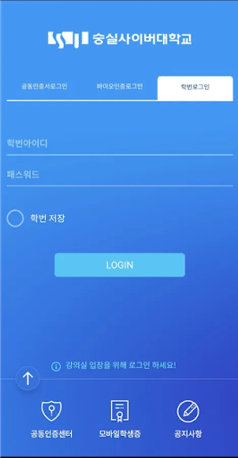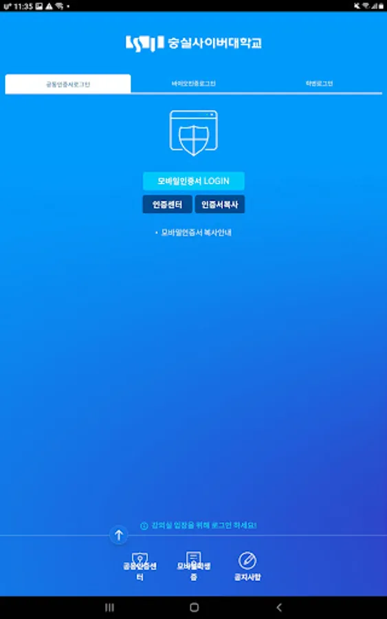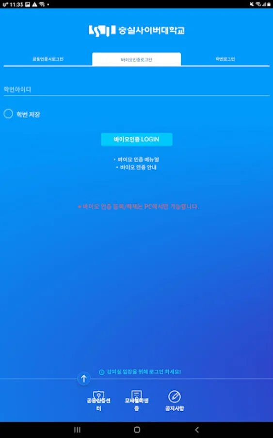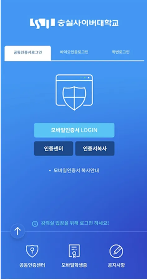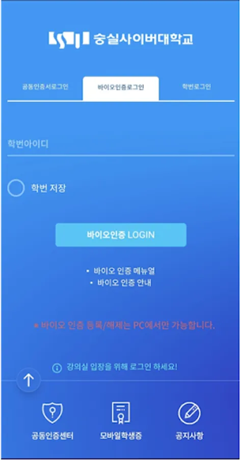 Soongsil Cyber University joint certificate/bio certification/student number login