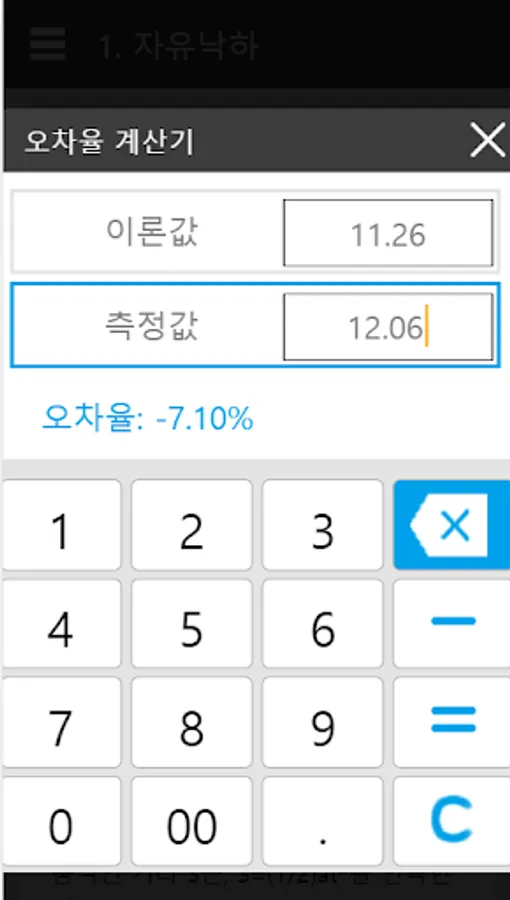 본 계산기는 학교 사이트에서 제공되는 데이터박스에 최적화되어 있습니다. 데이터박스를 지참하시고 실험해 주시길 바랍니다. 또한 모든 계산기는 2019년 1학기 수업을 수강했던 개발자 본인의 경험으로 만들어졌습니다. 실험내용이 변경되면 업데이트가 늦어질 수 있습니다. 또한 디자인을 개선해주실 미대분들은 항상 기다리고 있습니다. 밥이나 커피 정도는 사드릴 수 있으니 언제든지 연락 부탁드립니다. worrospeed@naver.com