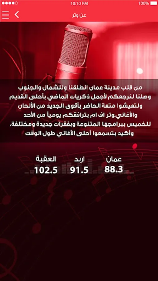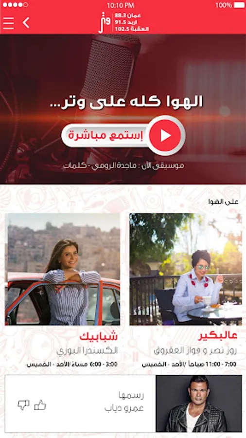 Watar’s mission is to engage the diverse target audience with genuine talk shows regardless of their backgrounds while entertaining them with good Arabic music, with a vision to be the number one radio station of choice for Jordanians by continuously intriguing the target audience with unique talk shows and entertaining music.