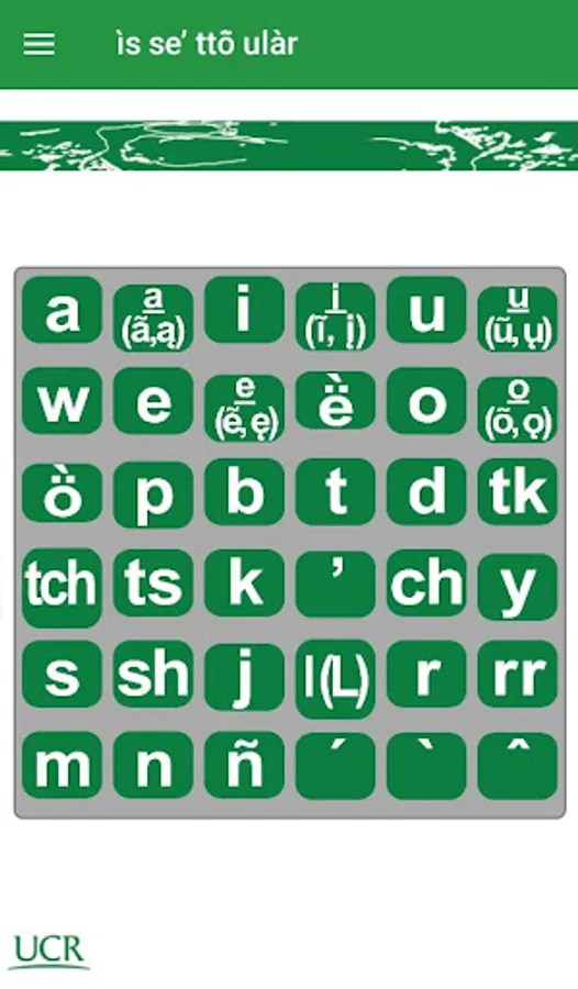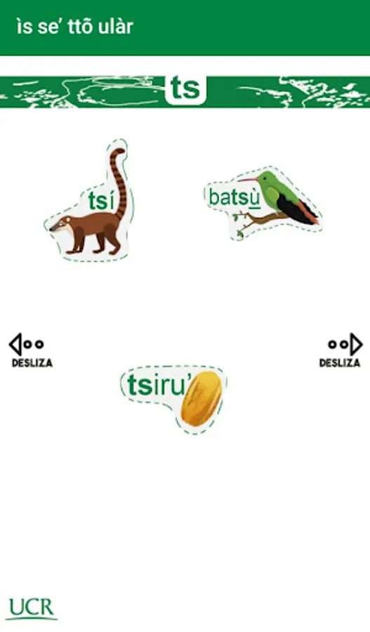 The Bribri language is spoken in two regions of Costa Rica: on the Atlantic slope of the Talamanca mountain range, Talamanca canton, in the Limón province (indigenous territories of Talamanca Bribri and Kéköldi), and on the peaceful slope of the Talamanca mountain range. Talamanca, canton of Buenos Aires, in the province of Puntarenas (indigenous territories of Salitre and Cabagra). It is also spoken in Panama, in the district of Guabito, on the border with Costa Rica. This application has been created with the idea of working as a didactic resource for the people of the Bribris communities. Each letter of the Bribri language alphabet is exemplified with one or more words presented in writing and in audio, this in order to learn to associate the writing of the words with how they are pronounced in this language. The application was developed following linguistic, didactic and graphic design criteria.