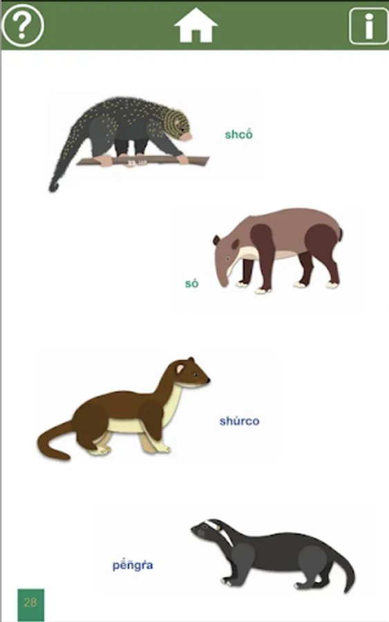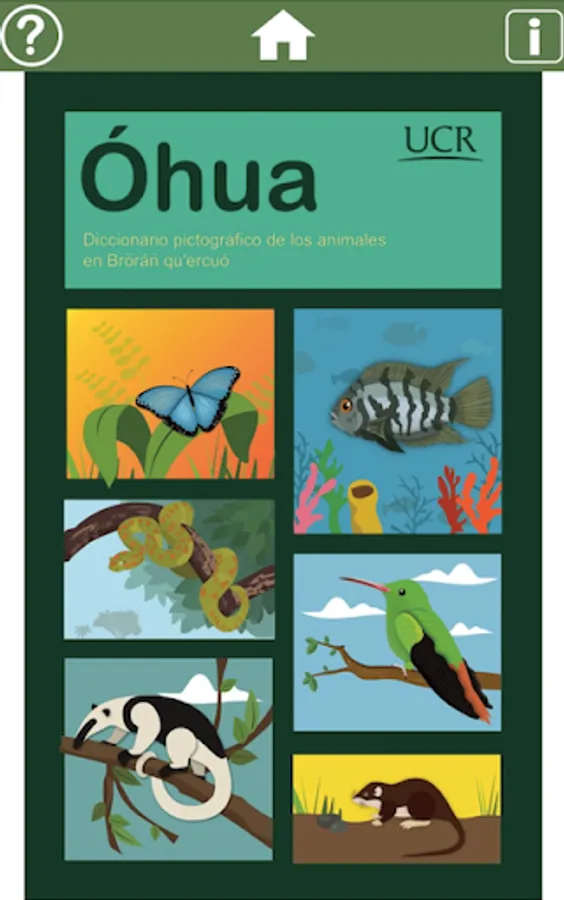 The Brorán language, traditionally known as Térraba, is the Costa Rican variety of the Naso language (the Panamanian variety of Naso is known as Teribe). The Brorán people are settled in San Francisco de Térraba and in other nearby towns, in the canton of Buenos Aires, Puntarenas. This application was created as a teaching resource for people in the community. It consists of an illustrated dictionary, with audio, of the animals in the Brorán language. The application was developed following linguistic, didactic and graphic design criteria.
