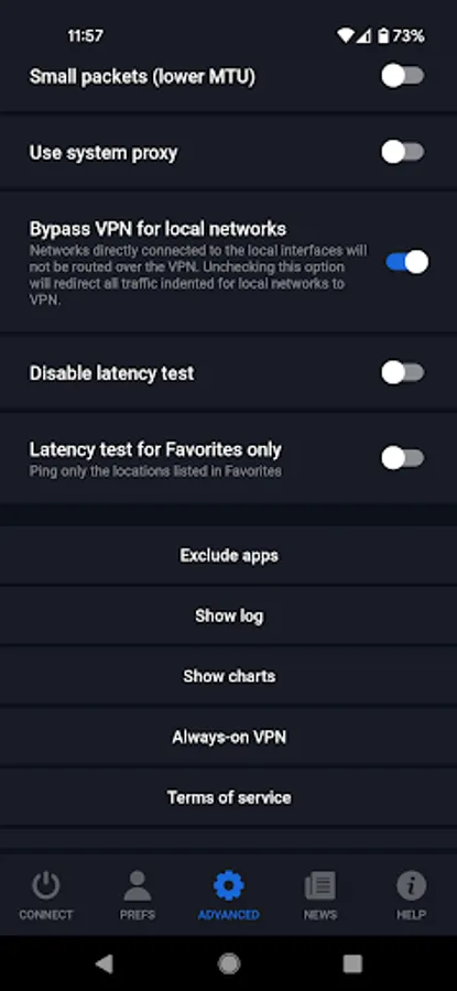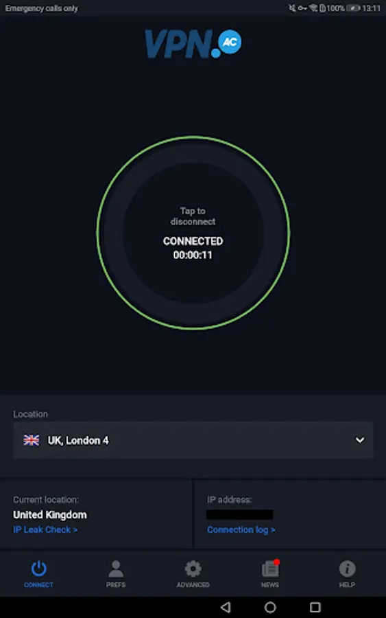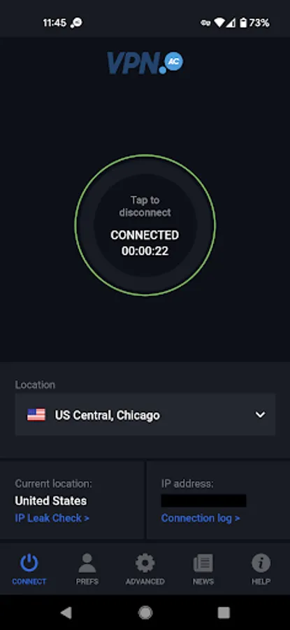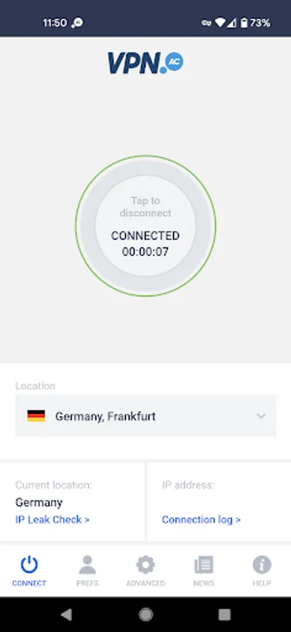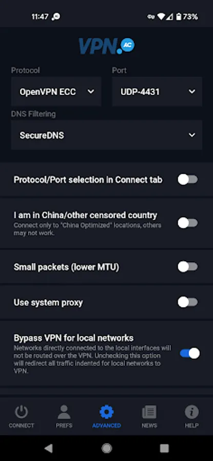 VPN.AC Client for Android encrypts all mobile traffic using state-of-the-art Elliptic Curve Cryptography and AES GCM ciphers.